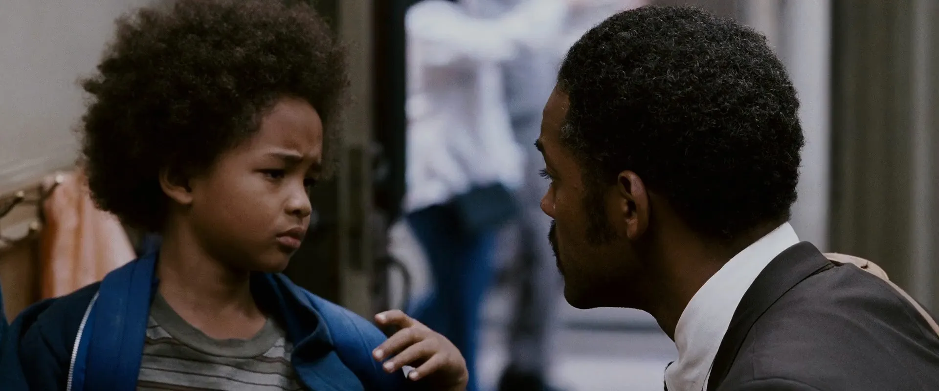 Will Smith as Chris Gardner, Jaden Smith as Christopher Gardner, Thandiwe Newton as Linda Gardner, Brian Howe as Jay Twistle, James Karen as Martin Frohm, Kurt Fuller as Walter Ribbon, Dan Castellaneta as Alan Frakesh, Joe Nuñez as Driver Who Hits Chris, David Fine as Big Guy Rodney, Takayo Fischer as Mrs. Chu, Kevin West as World's Greatest Dad, George Cheung as Chinese Maintenance Worker, Geoff Callan as Ferrari Owner, Scott Klace as Tim Brophy, Rashida Clendening as Bus Driver, Peter Fitzsimmons as Doctor, Maurice Sherbanee as Roy The Old Neighbor, Zuhair Haddad as Cab Driver, Victor Raider-Wexler as Landlord, Mark Christopher Lawrence as Wayne, George Maguire as Police Clerk, Adam Del Rio as Shoe-Spotting Intern, Rueben Grundy as Businessman, Ming Lo as Young Executive, Stu Klitsner as Dr. Strauk, Esther Scott as Shelter Worker, Cecil Williams as Reverend Williams, Amir Talai as Clerk, Mike Garibaldi as Paul, Jason Frazier as Young Man - Bus Fight, David Haines as Other Young Executive, Bob Greene as Doctor at Oakland Memorial Hospital, Robert Anthony Peters as Glide Shelter Worker, Cathy Fithian as Policewoman, Keith Stevenson as Indian Grocery Clerk, Karen Kahn as Professional Woman, Yeena Fisher as Businesswoman (uncredited), Phil Austin as Stock Broker (uncredited), Kenny Santiago Marrero as Stock Broker (uncredited), David Pearl as Stock Trader (uncredited), Rick Camp as Bus Rider (uncredited), Brad Carr as Dean Witter Employee (uncredited), Ben Fritz as Dean Witter Trader (uncredited), Adam Wang as Dean Witter Trader (uncredited), Zachary Culbertson as European Tourist (uncredited), Brendan Kruse as Bike Messenger (uncredited), Austin Scott as Homeless Youth (uncredited), David Michael Silverman as Doctor at First Hospital, Domenic Bove as Tim Ribbon, Joyful Raven as Hippie Girl