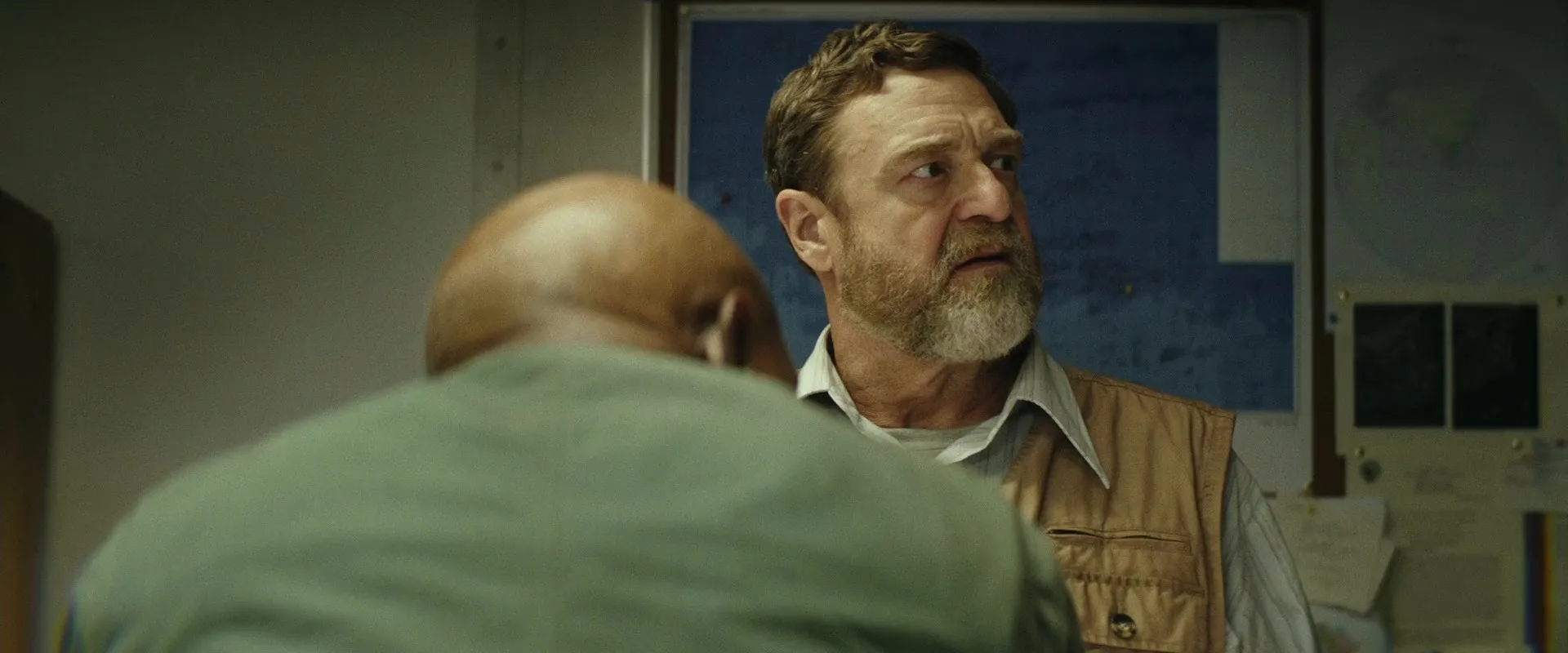 Tom Hiddleston as Captain James Conrad, Samuel L. Jackson as Lieutenant Colonel Preston Packard, John Goodman as Bill Randa, Brie Larson as Mason Weaver, Jing Tian as San Lin, Toby Kebbell as Maj. Jack Chapman / Kong Mo-Cap Services, John Ortiz as Victor Nieves, Corey Hawkins as Houston Brooks, Jason Mitchell as Glenn Mills, Shea Whigham as Earl Cole, Thomas Mann as Reg Slivko, Terry Notary as Kong Mo-Cap Services, John C. Reilly as Hank Marlow, Marc Evan Jackson as Steve Woodward, Eugene Cordero as Reles, MIYAVI as Gunpei Ikari, Will Brittain as Young Marlow / Marlow's Son, Richard Jenkins as Senator Al Willis, Allyn Rachel as Secretary O'Brien, Robert Taylor as Athena Captain, James M. Connor as General Ward (voice), Thomas Middleditch as Jerry (voice), Brady Novak as Base Guard, Peter Karinen as Chinook Pilot, Brian Sacca as Chinook Co-Pilot, Joshua Funk as Seismic Soldier, Daniel F. Malone as Boat Captain, Glenn Kiwi Hall as Boat Captain, Garreth Hadfield as Crew Chief, Shannon Brimelow as Kamikaze Pilot, Jon Quested as Dead Pilot, Korey Williams as Sunglasses Pilot, Dat Phan as Bar Thug, Cynthy Wu as Thug's Girlfriend, Beth Kennedy as Marlow's Wife, Bryan Chojnowski as Chicago Taxi Driver, Nick Robinson as Bar Guest (uncredited), Kevin Kent as Military technical advisor, Erin Moriarty as Bar Guest (uncredited)
