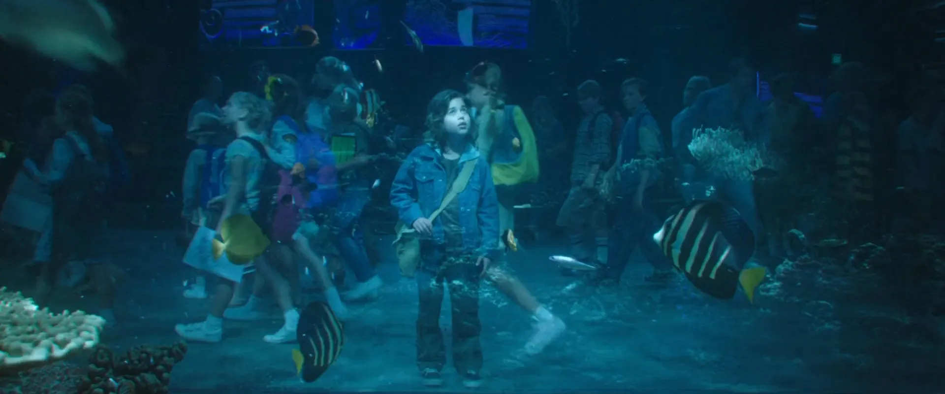 Jason Momoa as Arthur Curry / Aquaman, Amber Heard as Mera, Willem Dafoe as Nuidis Vulko, Patrick Wilson as King Orm Marius / Ocean Master, Nicole Kidman as Atlanna, Dolph Lundgren as King Nereus, Yahya Abdul-Mateen II as David Kane / Black Manta, Temuera Morrison as Thomas Curry, Ludi Lin as Captain Murk, Michael Beach as Jesse Kane (Manta's Father), Randall Park as Dr. Stephen Shin, Graham McTavish as King Atlan, Leigh Whannell as Cargo Pilot, Tainui Kirkwood as Young Arthur (3 Years Old), Tamor Kirkwood as Young Arthur (3 Years Old), Denzel Quirke as Young Arthur (3 Years Old), Kaan Guldur as Young Arthur (9 Years Old), Otis Dhanji as Young Arthur (13 Years Old), Kekoa Kekumano as Young Arthur (16 Years Old), Julie Andrews as Karathen (voice), John Rhys-Davies as Brine King (voice), Djimon Hounsou as King Ricou (voice), Andrew Crawford as Brine King / King Ricou (mocap), Sophia Forrest as Fisherman Princess, Natalia Safran as Queen Rina, Micah Ohlman as Newscaster, Jack Andrew as Mike (Bully), Frankie Creagh-Leslie as Matt (Bully), Sophia Emberson-Bain as Tour Guide (Aquarium), Ilya Melnikoff as Submarine Captain, Hank Amos as Submarine Pirate, Kyryl Koltsov as Submarine Crew Member, Patrick Cox as Cue Ball, Luke Owen as Biker, Robert Longstreet as Professor James, Devika Parikh as Newscaster Morgan, Sonny Le as Metalsmith, Jon Fabian as Italian Vendor, Mabel Tamone as Italian Young Girl, Rita Dinardo as Italian Old Woman, Anthony Standish as Barfly, Nicolette Bianca as Italian Mother, Victor Leto as Flower Stall Vendor, Vincent B. Gorce as Italian Bell Father, Gabriella Petkova as Italian Bell Girl, Oriana Lacono as Italian Bell Mother, Pearl Grantham as Ancient Atlantean Woman, Noa Tsuchiya as Ancient Atlantean Child, Alice Lanesbury as Arthur's Teacher, Nicolas Bosc as Atlantean Soldier #1, Joshua Levinson as Atlantean Soldier #2, Garreth Hadfield as White Guard / Red Commando (uncredited)