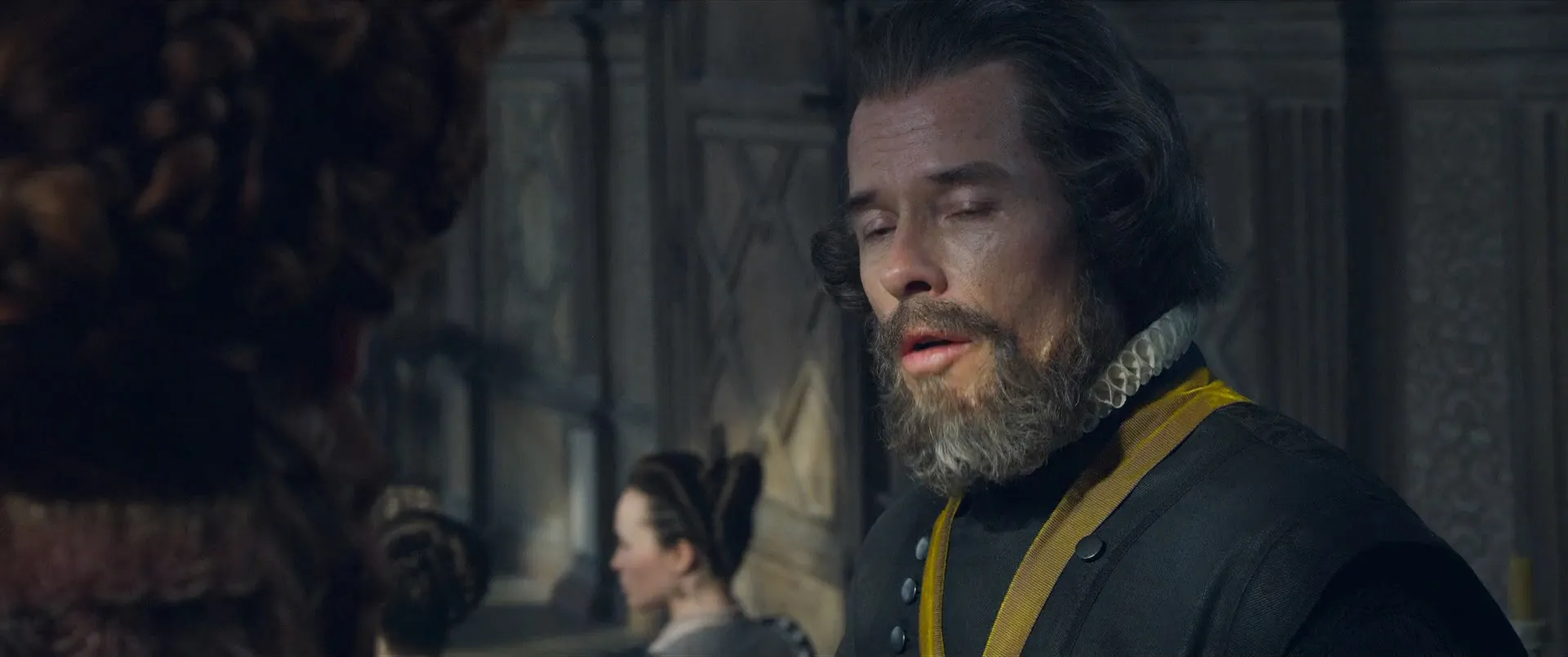 Saoirse Ronan as Mary Stuart, Margot Robbie as Queen Elizabeth I, Jack Lowden as Henry Darnley, Joe Alwyn as Robert Dudley, David Tennant as John Knox, Guy Pearce as William Cecil, Gemma Chan as Bess of Hardwick, Martin Compston as Earl of Bothwell, Ismael Cruz Córdova as David Rizzio, Brendan Coyle as Earl of Lennox, Ian Hart as Lord Maitland, James McArdle as James, Earl of Moray, Richard Cant as Thomas Andrews, Guy Rhys as Earl of Kent, Thom Petty as Earl of Shrewsbury, Izuka Hoyle as Mary Seton, John Ramm as Bull, Simon Russell Beale as Robert Beale, Maria Dragus as Mary Fleming, Liah O'Prey as Mary Livingston, Eileen O'Higgins as Mary Beaton, Greg Miller Burns as Thomas Hepburn, Aneurin Pascoe as John Hepburn, Adrian Derrick-Palmer as George Dalgleish, Kal Sabir as The Laird of Ramorny, Luke Kidd as James Haliburton, Adrian Lester as Lord Randolph, Georgia Burnell as Kate Carey, Alan Turkington as Thomas Jenye, Euan MacNaughton as William Kirkcaldy of Grange, Scot Greenan as Hector Maclean, Karen Dunbar as Commoner, Ian Hallard as Sir Richard Knightley, Andrew Rothney as King James I, Angela Bain as Snuffer Woman, Abby Cassidy as Fotheringhay Gentlewoman, Shalisha James-Davis as Fotheringhay Gentlewoman, Adam Bond as Sir William Douglas, Katharine O'Donnelly as Young Holyrood Servant, Grace Molony as Dorothy Stafford, Luke Hobson as Henry Killigrew, Ben Wiggins as John Tamworth, Eldredd Wolf as William Killigrew, Eric MacLennan as Portrait Painter, Nathen East as Andrew Ker of Fawdonside, Daniel Booroff as Knox's Secretary, Sean Buchanan as Francis Yaxley, Matthew Pidgeon as Wedding Announcer, Benjamin Barraclough as Officer, Jordan Turk as James MacDonald, Adam Stevenson as Urie Campbell, Scot Greenan as Hector MacLean, Chris Grahamson as Moray's Drummer, Ed Jones as William Taylor, Owen Gorman as Bishop, John Stahl as Fisherman, Kadiff Kirwan as Attaché, Alex Beckett as Sir Walter Mildmay, Will Rowlands as Soldier