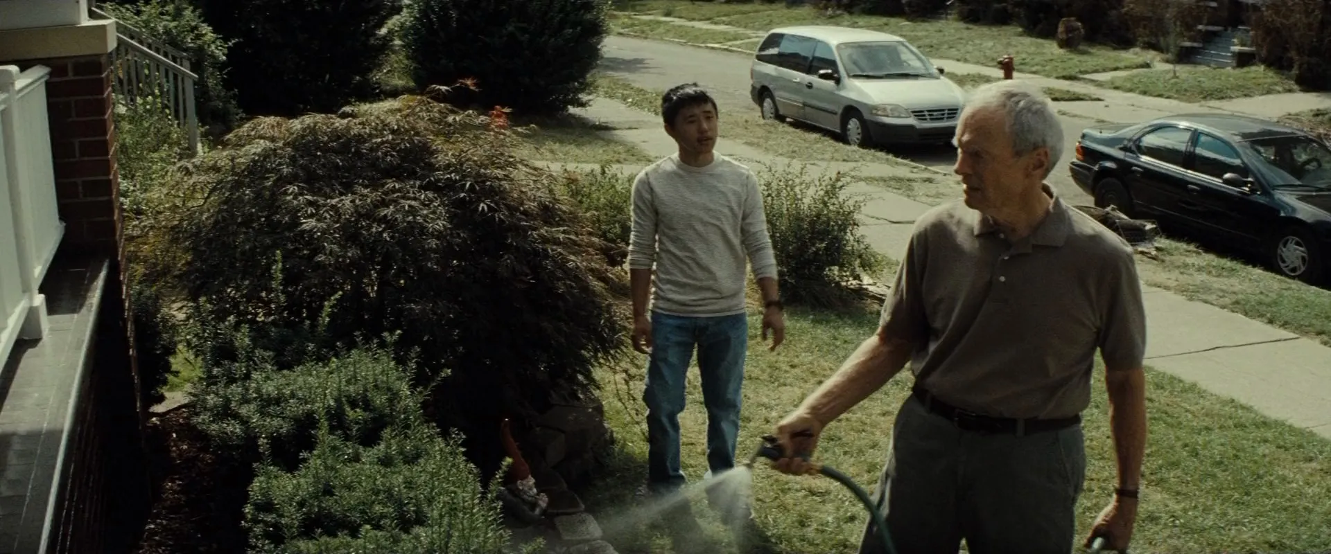 Clint Eastwood as Walt Kowalski, Christopher Carley as Father Janovich, Bee Vang as Tao Vang Lor, Ahney Her as Sue Lor, Brian Haley as Mitch Kowalski, Geraldine Hughes as Karen Kowalski, Dreama Walker as Ashley Kowalski, Brian Howe as Steve Kowalski, John Carroll Lynch as Barber Martin, William Hill as Tim Kennedy, Brooke Chia Thao as Vu, Chee Thao as Grandma Vang Lor, Choua Kue as Youa, Scott Eastwood as Trey, Xia Soua Chang as Kor Khue, Doua Moua as Fong/Spider, Sarah Neubauer as Paralegal, Lee Mong Vang as Hmong Gang Banger 3 (uncredited), Nana Gbewonyo as Monk (uncredited), John Anton as Family Friend (uncredited), Austin Douglas Smith as Daniel Kowalski, Ramon Camacho as Latino #3 (uncredited), Rio Scafone as Day Planner, Thomas D. Mahard as Mel, Arthur Cartwright as Prez (uncredited), Julia Ho as Dr. Chu, Elvis Thao as Hmong Gangbanger, Clint Ward as Officer, Shelagh Conley as Extra (uncredited), William C. Fox as Family Friend (uncredited), Tony Stef'Ano as Man on Street (uncredited), Carey Torrice as Blonde (uncredited), Sonny Vue as Smokie, Greg Trzaskoma as Bartender, John Johns as Al, Davis Gloff as Darrell, Conor Liam Callaghan as David Kowalski, Michael E. Kurowski as Josh Kowalski, Maykao K. Lytongpao as Gee, Carlos Guadarrama as Head Latino (uncredited), Andrew Tamez-Hull as Latino Gangbanger (uncredited), Antonio Mireles as Latino Gangbanger (uncredited), Tru Hang as Hmong Grandfather (uncredited), Marty Bufalini as Lawyer (uncredited), My-Ishia Cason-Brown as Muslim Receptionist (uncredited), Rochelle Winter as Waitress (uncredited), Claudia Rodgers as White Woman Neighbor (uncredited), Darline Bucchare as Church Member (uncredited), Jeffrey Scott Basham as Man on Street (uncredited)